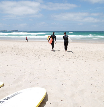 Beim 3-tägigen „Surftaster“ lernen Anfänger in einer kleinen Gruppe von max. 8 Teilnehmern die Grundlagen des Wellenreitens in Theorie und Praxis. Intermediates werden von den erfahrenen Surflehrern bei den nächsten Schritten, dem sicheren Grünwellenstart, Bottomturn und Cutback gecoacht. Das Material (Wetsuit + Board) ist beim Surfkurs inklusive. Wer nach 3 Tagen Surftaster das Dauergrinsen nicht mehr aus dem Gesicht bekommt, kann Board & Neo leihen und selber surfen gehen oder zusätzliche Kurseinheiten buchen.